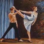 2011Twee ballerina's komen met een gelijke sprong het toneel op. De voorstelling kan beginnen. Een warm, kleurrijk schilderij vol beweging.